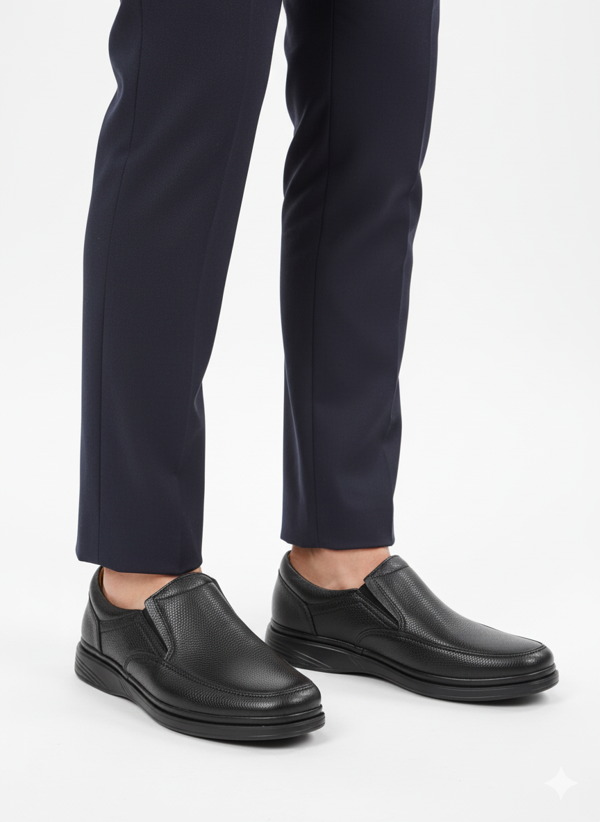 Erkek Hakiki Deri Ortopedik Lastikli Bağcıksız Kauçuk Kaymaz TabaN Erkek Kundura