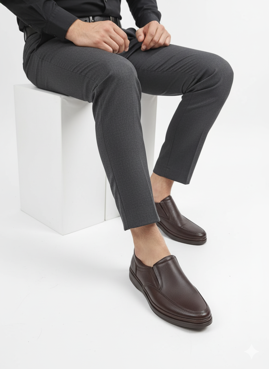 Erkek Hakiki Deri Ortopedik Lastikli Bağcıksız Kauçuk Kaymaz TabaN Erkek Kundura (225 EKN 00)